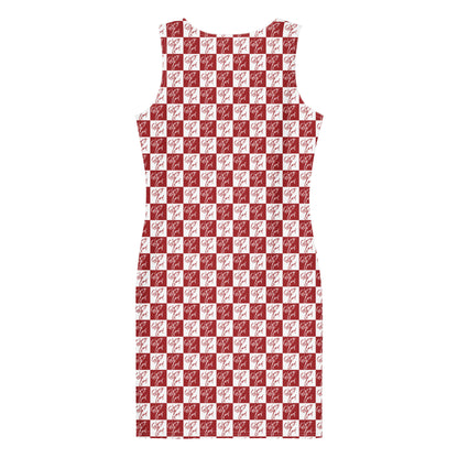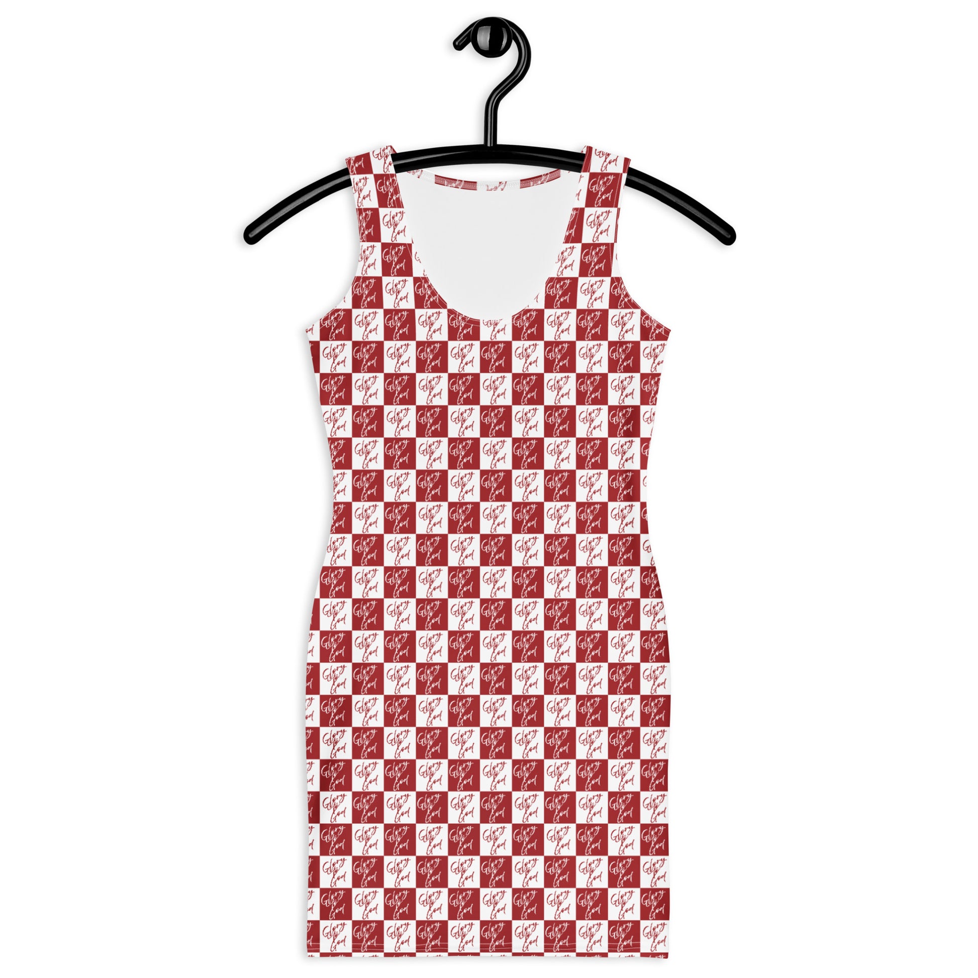 She can dress it up or down, while showing reverence to God in this red and white patterned dress.